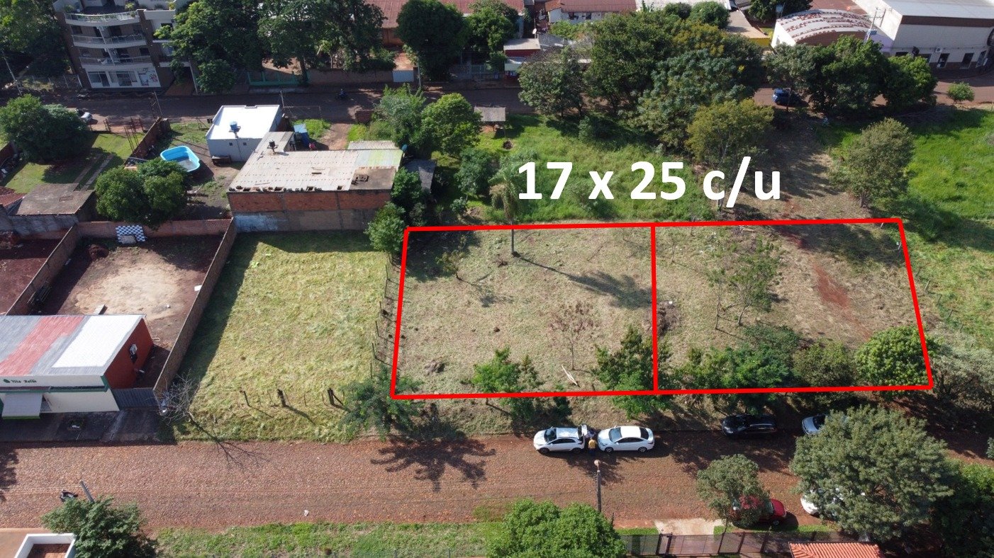 Cada Terreno tiene una dimensión de 17 mts de frente y 25 mts de Fondo Total 425 mts2